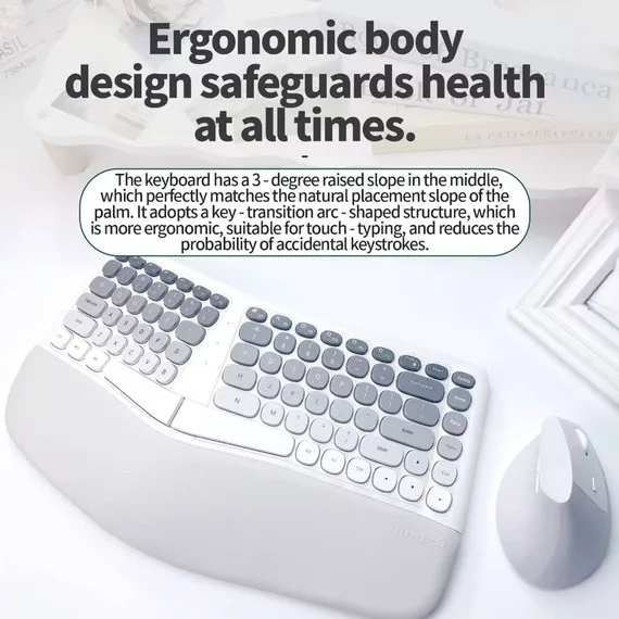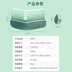 کیبورد این کیبورد و ماوس بی سیم مافی مدل BOMI دارای ۸۴ کلید است که به صورت فشرده با کلیدهای ترکیبی طراحی شدهاند و با شیب ۳ درجه، تجربه تایپ راحتتر و ارگونومیک را به کاربر ارائه میدهد. ابعاد مناسب و وزن ۷۱۸ گرمی این کیبورد باعث میشود برای کارهای طولانیمدت مناسب باشد.